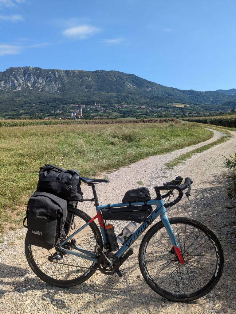 The foothills of the Julien Alps framed my ride over gravel tracks through vineyards and tiny villages. At times I followed a river, often I was off the bike and panting up steep uphill, sometimes it was rocky off-road through heavily wooded trails. Didn’t matter though, it still looked great.