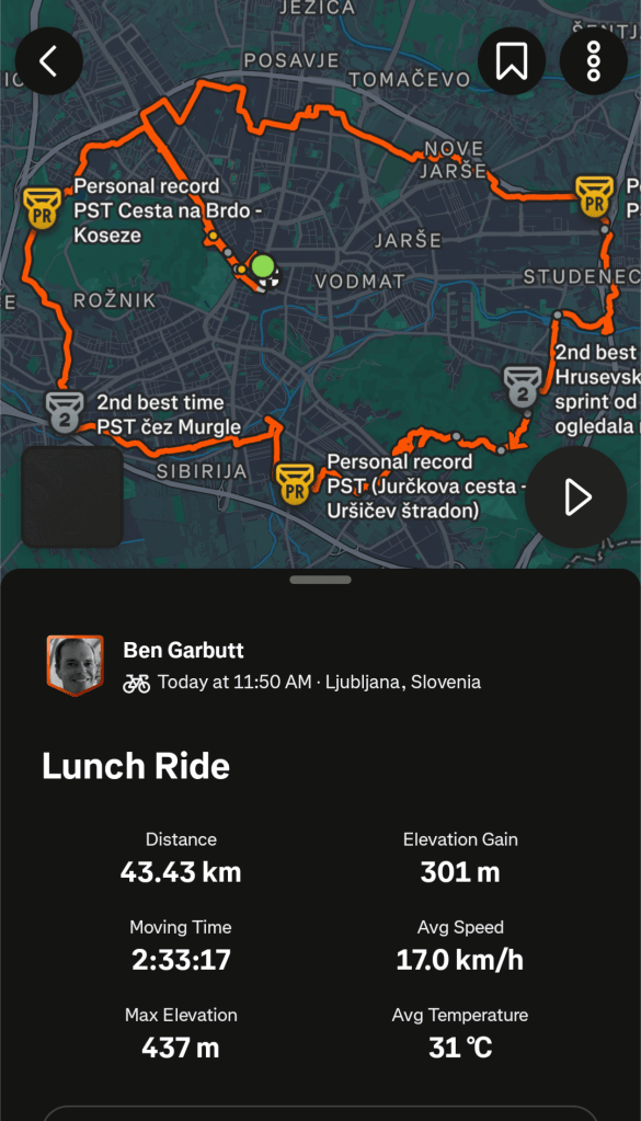 Here was the Ljubljana that tourists didn’t often see. The gasworks and graveyards, the tower blocks, shopping precincts, garages, interchanges, back gardens and playgrounds, sometimes through woodland or through tunnels under motorways, often over gravel tracks or pavement running next to arterial roads. It was fun to see some different parts of the city, even if I was only whizzing through.