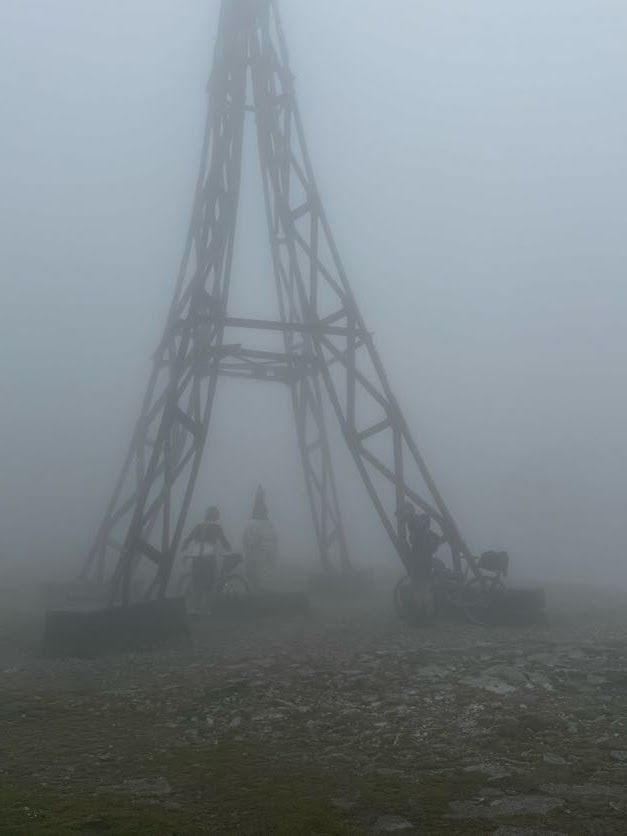 We climbed further into the clouds and after a couple of hours of hike a bike the thick fog dropped visibility to 5m. The path was unclear, GPS our absolute saviour. We had to stick closely together, often with our bikes on our shoulders, hopping over rocks and mud.