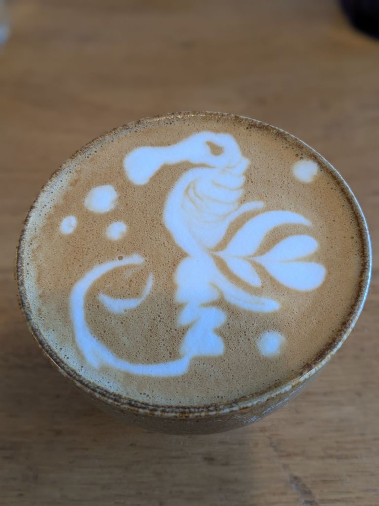 The route took us around the harbour head and back through town. Befitting of a gastronomic capital we had an incredible second breakfast – the barrista coffee art was a seahorse! – before heading up a MASSIVE monster mountain via a track so rocky and steep that it was unrideable. A constant stream of sweat stung my eyes and the legs were burning.