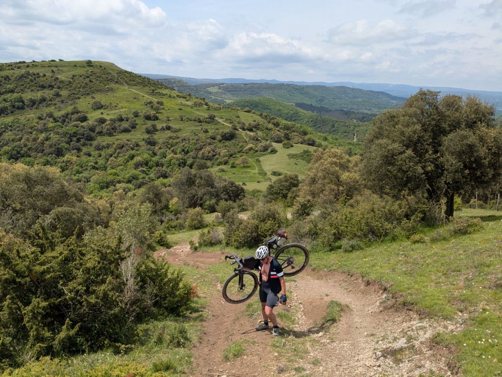 After only getting partially lost in the woods and having to push through brambles on (almost unbelievably) even steeper paths, the third part of the ride was on the route of an old mountain railway, uphill (but gently) for two hours on gravel paths. It was so so hot.