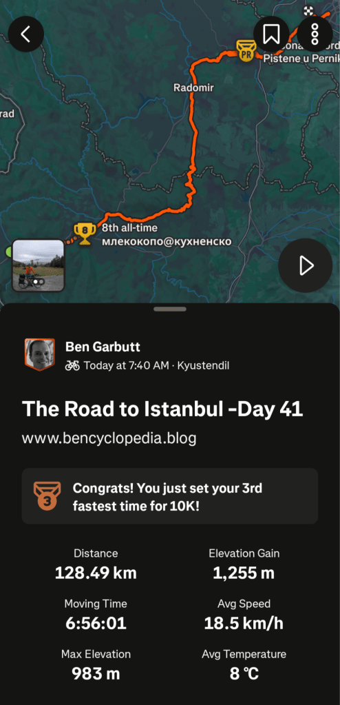 I had to climb over a few hills before I hit a series of satellite towns. The Balkan tendency to drop litter absolutely anywhere appears to have reached its heights in Bulgaria. I mean litter in its widest sense. Anything you can contain in a plastic bag to large bulky items, even half a car or something? Just luzz it wherever you want. The smell becomes pervasive.