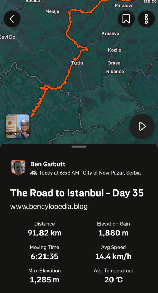 Climbing out of Tutin I passed through the Serbian then Montenegrin borders into my eleventh country.