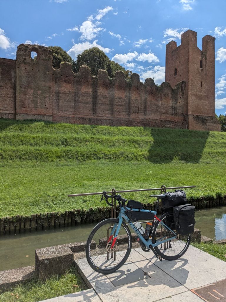 I was on the road now and the ride variety was simply stunning. At some moments I would be careering over beautiful gravel tracks through forests, then through small historic towns, past castles, and at others marvelling at the Dolomites over my left shoulder and pedalling past crystal streams.