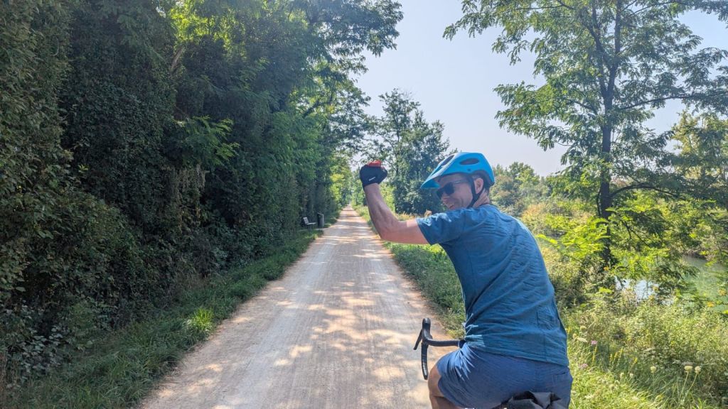 So as usual we aimed to put distance in early, trundling through Mulhouse and up to the border, where we rejoined the Rhine – still impressively fast and wide.