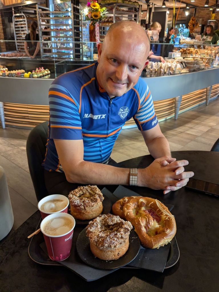 Knowing the weather would melt us later, we took to the road early, after a big boulangerie breakfast.